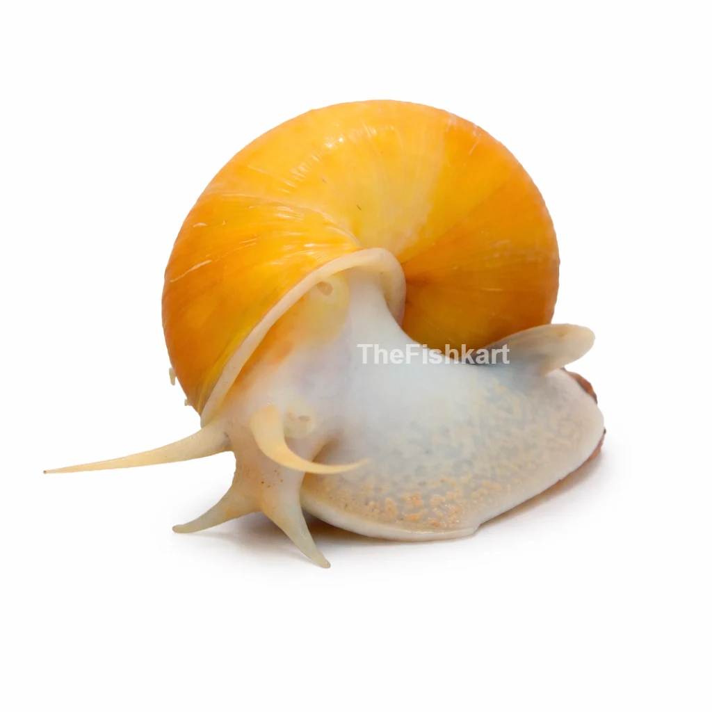 Apple Snail is a hardy and eye-catching aquarium snail that adds both beauty and function to your tank. It helps in cleaning leftover food and light algae while enhancing the look of the aquarium.