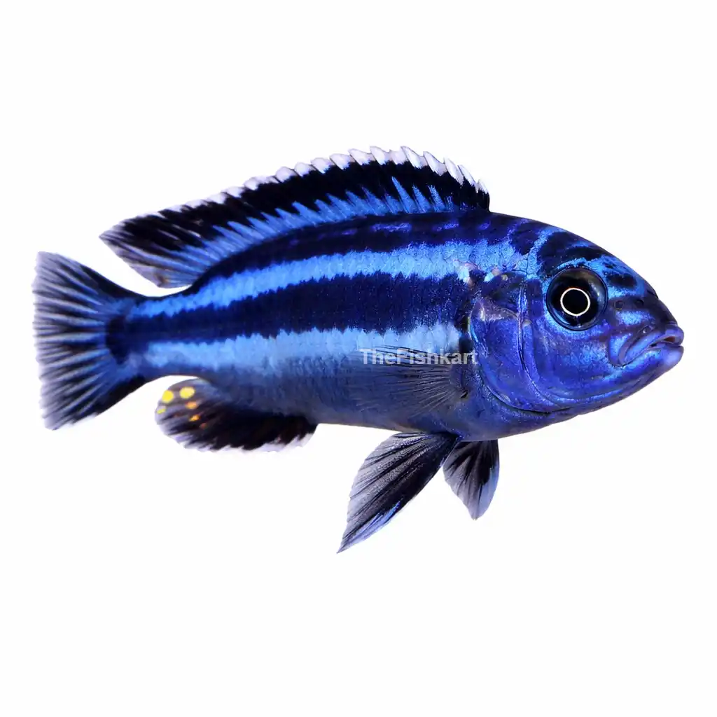 Blue Auratus Cichlid is a bright striped fish, perfect for aquariums in Kolkata & nearby with 100% alive guarantee