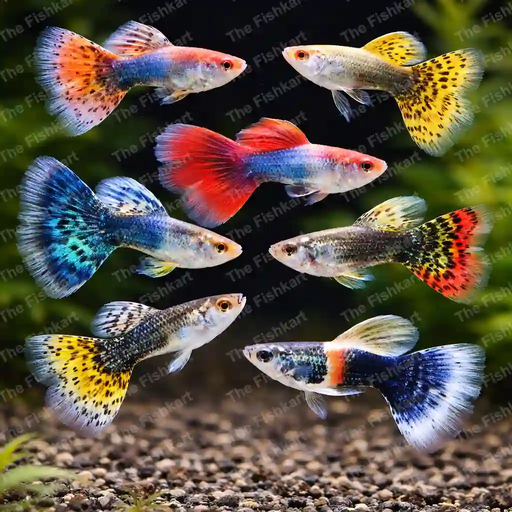 Bright mixed color guppy fish – active, peaceful and perfect for beginner aquariums.
